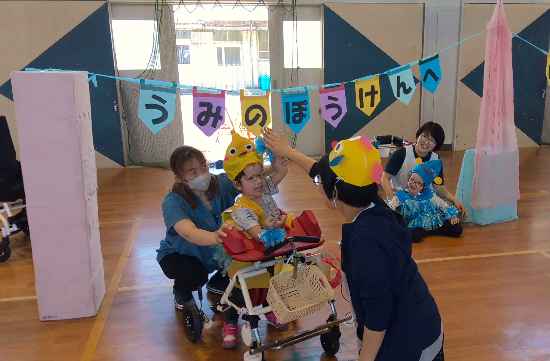 「うみのぼうけん」という競技で、友達の魚ちゃんを助けました。
