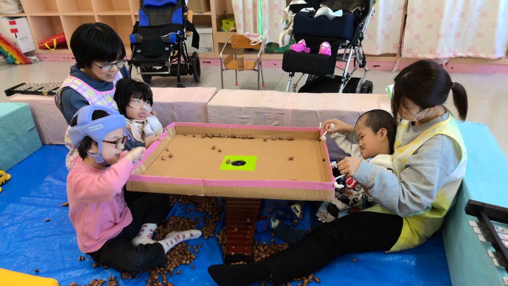 どんぐり遊びをしたり、光遊びをしたりして楽しみました。