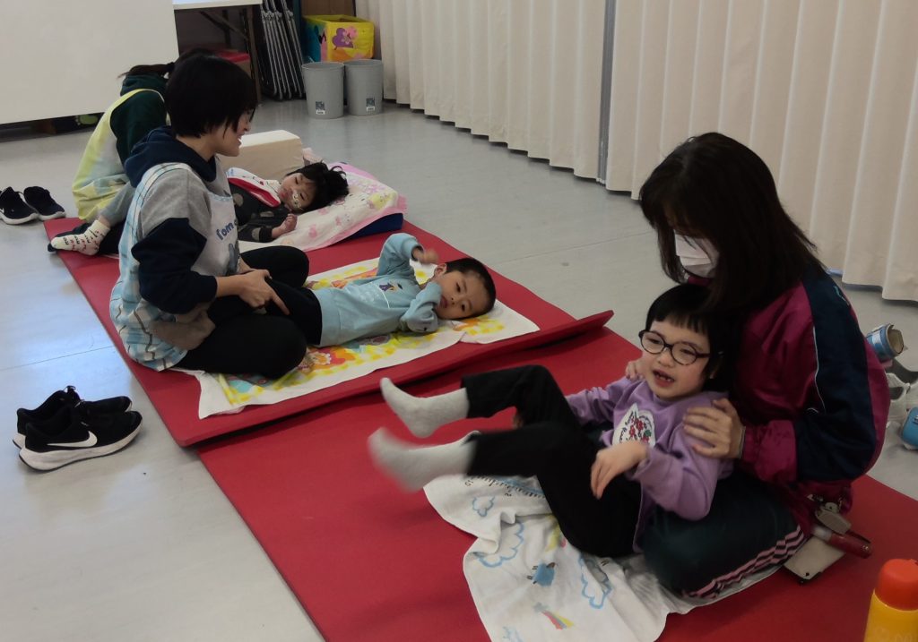 ストレッチをしたり、座位や立位の練習をしたり、みんな頑張っています。